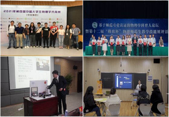 创新能力:本专业通过实施“基础+提升”训练机制和参赛机制,强化学生的创新意识,培养学生的创新能力。实施学生成长“核聚变”工程,开设“创新学校”,组织学生参加“挑战杯”科技作品竞赛、“互联网+”创新创业大赛、大学生物理学术竞赛、大学生物理实验设计与创新大赛、大学生力学竞赛、师范生技能大赛等各级各类专业学科竞赛,立足专业开展“未来老师杯”教学技能和物理教具制作大赛、“创新杯”学术科技作品竞赛和“行知杯”创新创意大赛,开办大学生暑期“双创”训练营,大力培养学生的创新实践能力。近5年,本专业的学生在国家级、省级高水平学科竞赛中获奖百余项,获奖人数逐年增多,获奖等次不断突破。