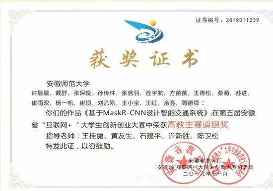 获奖情况:校级:①2016-2019连续三年获得校一等奖学金和“三好学生标兵”的荣誉称号;②第九届安徽省双百大赛校级一等奖;第十届安徽省双百大赛校级三等奖;③ 朱敬文奖学金;省级:第五届“互联网+”大赛省级银奖。国家级:① 2016-2017学年,国家励志奖学金; ② 2017-2018学年,国家奖学金;③2018-2019学年,国家励志奖学金。