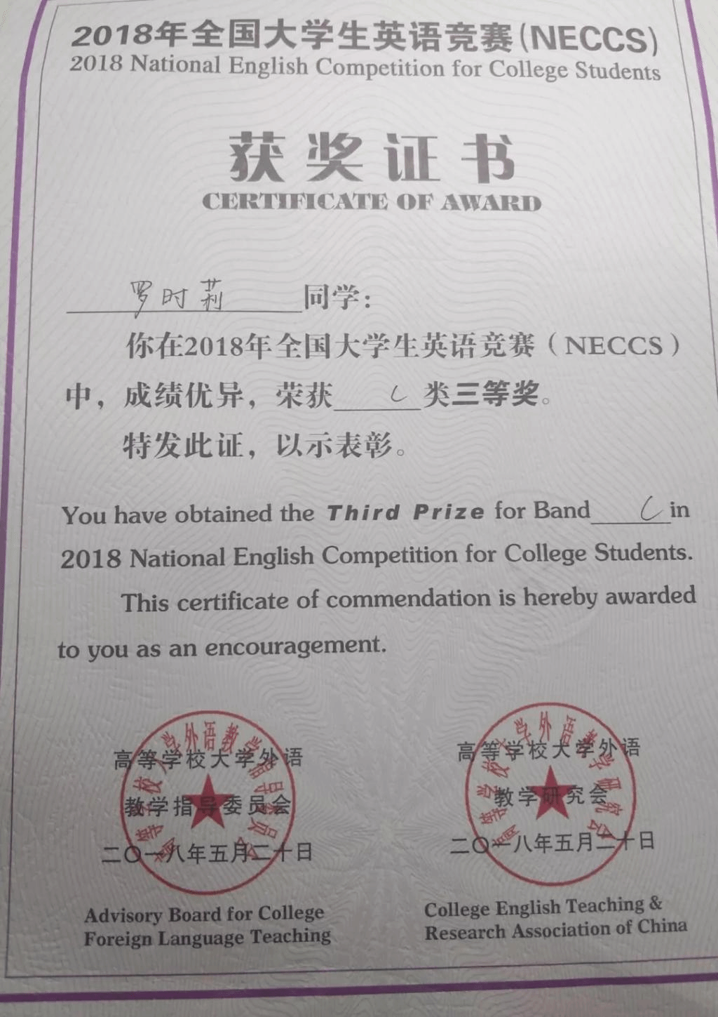 多次参加学科竞赛活动,保研到中国科学技术大学攻读研究生。