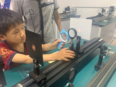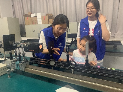活动中,来自于不同学校的20余名小学生和幼儿园小朋友在家长的陪同下,走进光电信息材料功能调控与应用安徽省重点实验室。实验室主任陆洲教授通过互动问答和动手操作向公众展示了光的来源、光的旅行方式和应用,邀请亲子家庭参与“光的干涉”和“薄透镜成像”等科普实验,并向大家展示了光电交叉融合的研发成品。此次活动拓宽了孩子们的科普视野,提升了他们对光的认知能力,培养了他们对世界的好奇心、探索欲和求真态度。