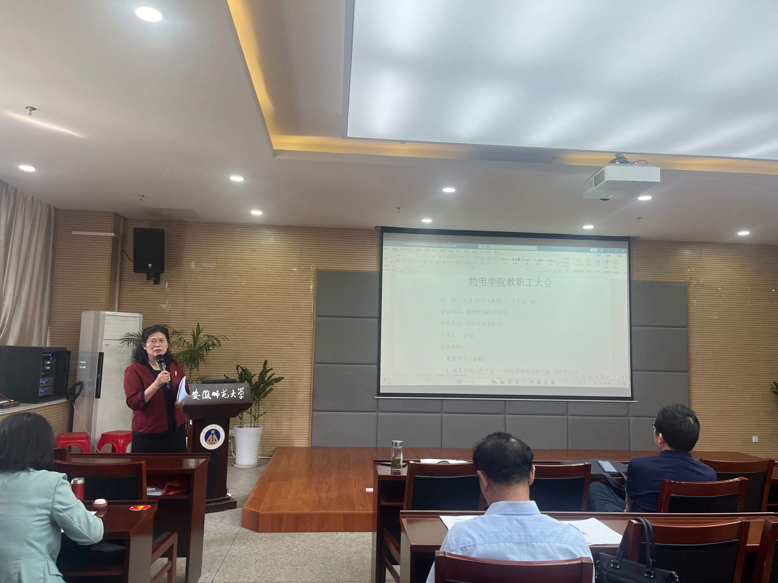 5月29日下午,必赢国际在物理楼304会议室召开全体教职工大会,传达学习习近平总书记重要讲话精神,布置近期重点工作,通报学院巡察整改情况。学院全体教职工参加会议。学院党委书记李娟主持会议。