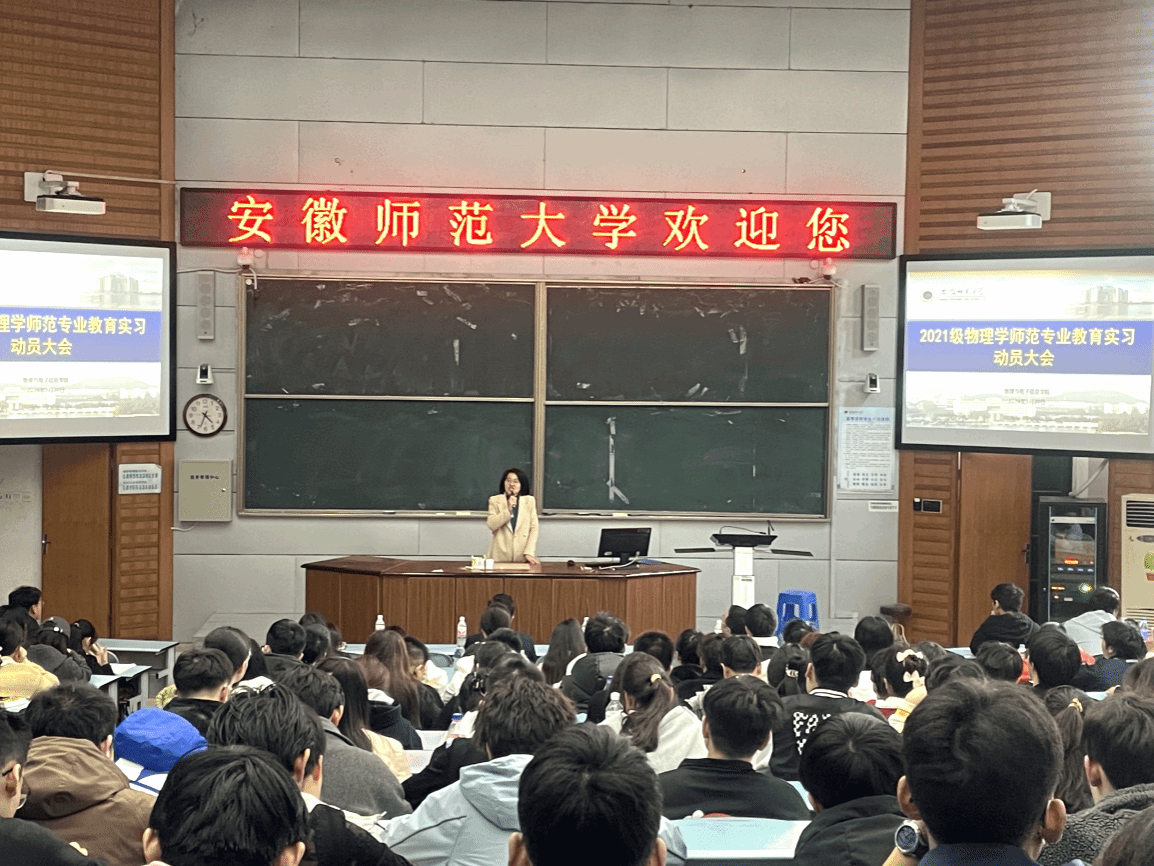 为帮助学生了解教育实习相关要求及流程,必赢国际召开2021级物理学(师范)专业教育实习动员大会。学院教学副院长张爱清、实习指导教师、辅导员及2021级物理学(师范)专业全体同学、2021级优师计划专业学生参会。
