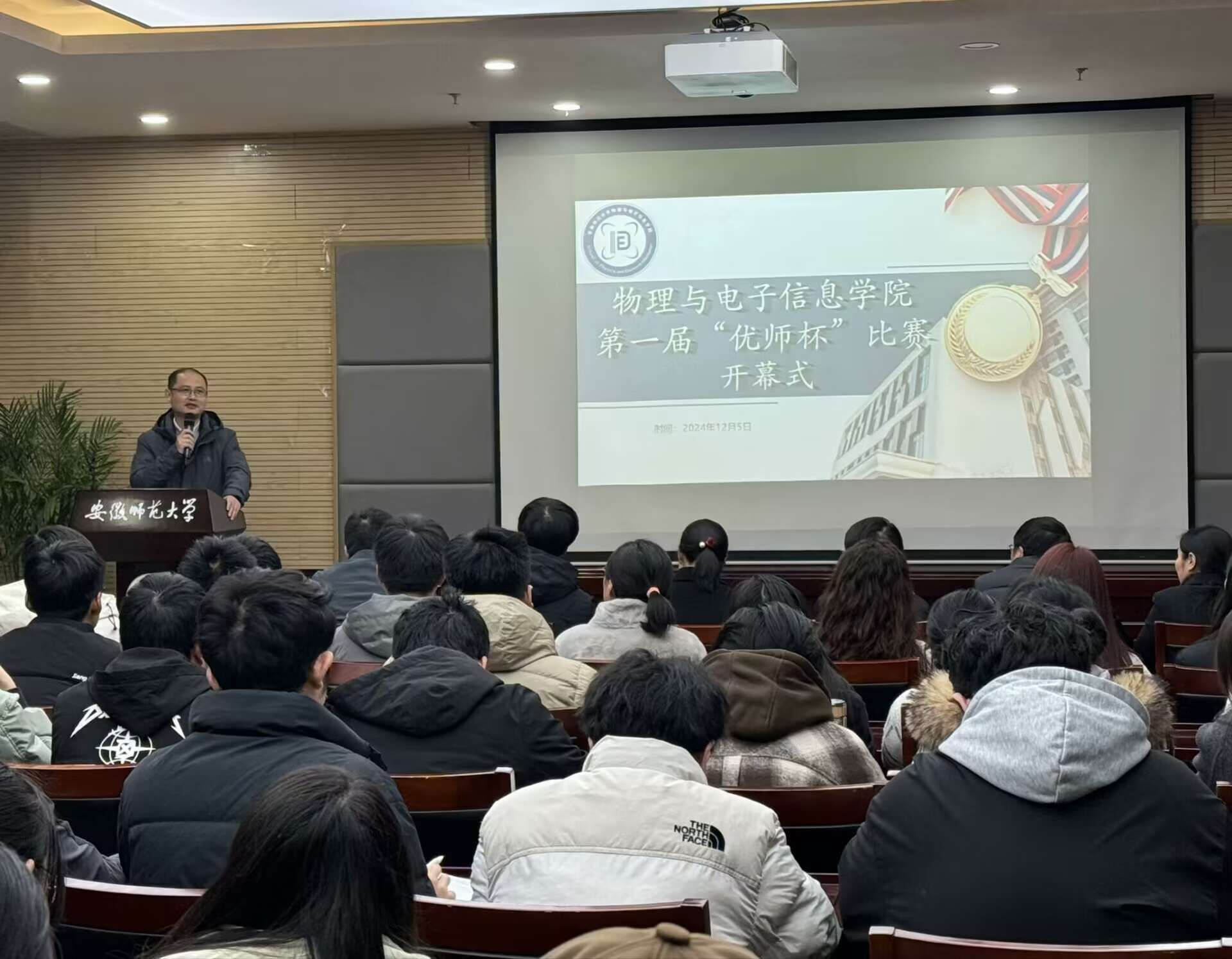 12月5日晚,比赛正式拉开帷幕,开幕式由物理学专业副主任黄武英主持,学院科研副院长盛晓伟发表致辞,他强调了“优师计划”师范生培养的重要性,期待选手们在实践中精进专业技能,提升教书育人本领。物理学专业副主任汪志荣勉励同学们以赛促练、以赛促学、以赛促教,努力成长为具有高尚师德、先进教学理念、扎实教学技能的优秀教师。2021级优师班辅导员刘冠琪通过分享“初心”“自证”“实干”三个关键词,希望全体优师学生坚定教育情怀,提升综合素养,以更加扎实的教学技能投身到基层教育。2022级优师班学生代表李易宁讲述学习路上的成长感悟,表示同学们将珍惜此次交流学习的机会,扎实锤炼教育基本功,为日后成为一名优秀教师打下坚实基础。