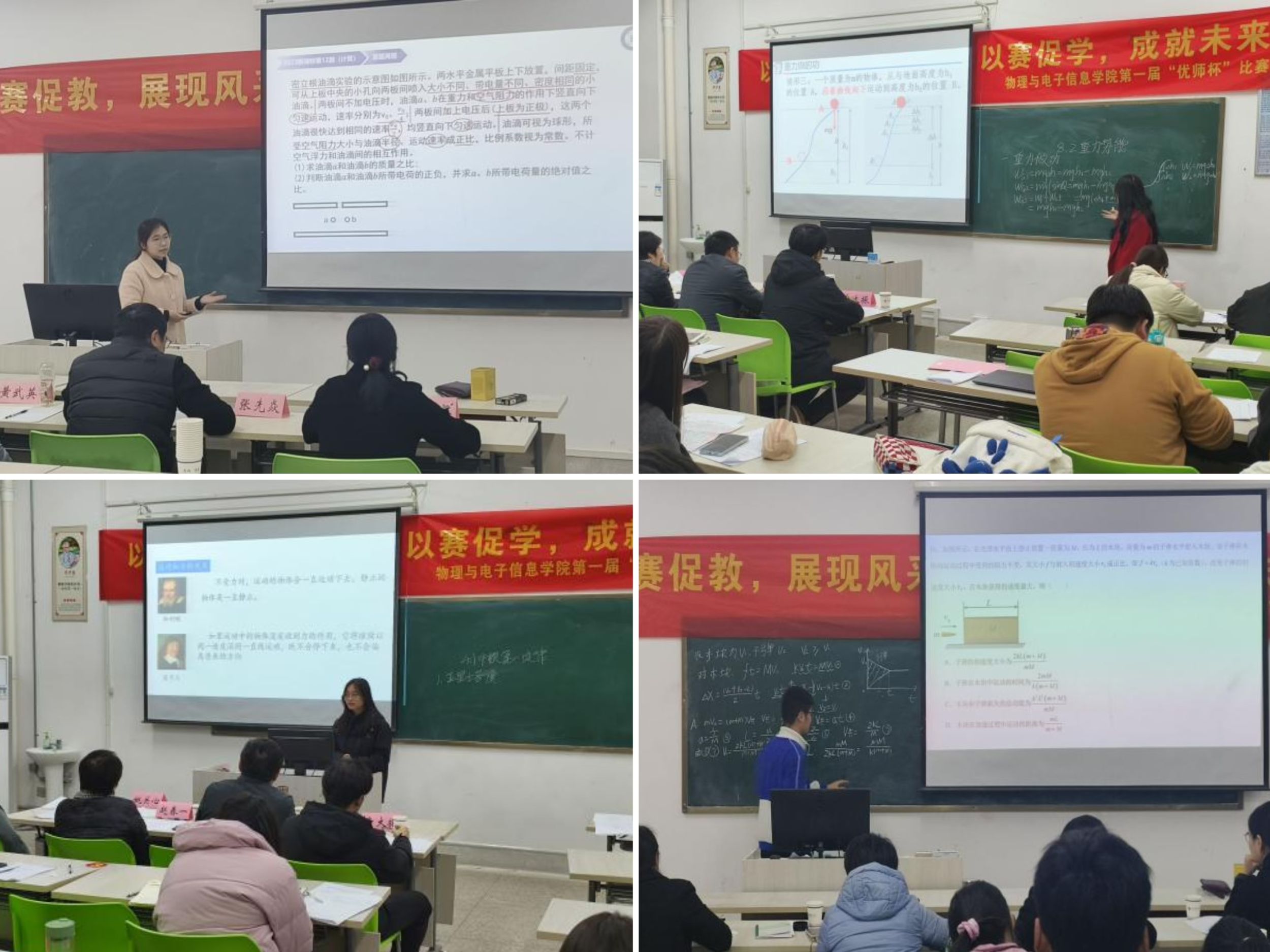 比赛采用公开讲课的方式,分中学物理教学、高考题目讲解和自制教具讲解三个赛道进行,参赛选手从现行高中物理教科书自选具体章节,按照新课程标准的理念和要求进行课堂教学设计,并进行课堂无生教学。赛后评委老师结合选手们的现场课堂教学,围绕教学内容、教学设计、教学板书、教学组织、教学语言与教态、教学特色等方面,针对性地指出了选手的优点与不足,并提出教学改进方案。学生们认真聆听,潜心领悟教学心得,学习优秀教学经验。