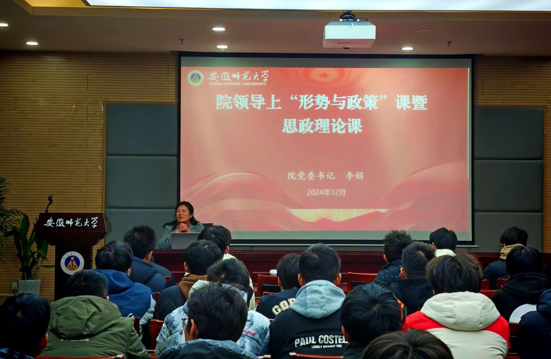 近日,必赢国际党委书记李娟在物理楼304会议室为必赢国际2024级电子信息工程专业学生讲授“形势与政策”课暨思政理论课,课程由辅导员张津源主持。