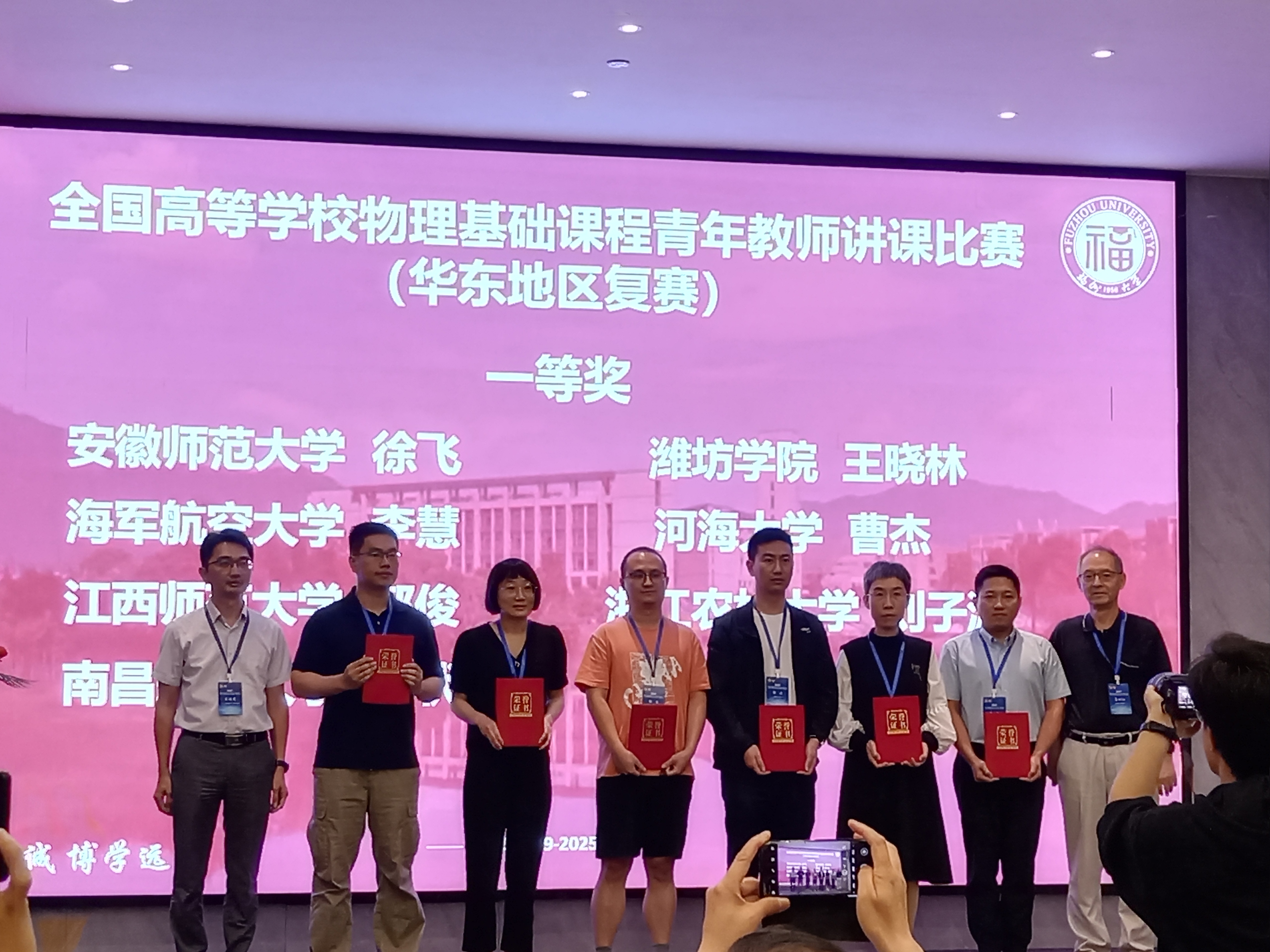 5月29日-6月2日,2025年全国高等学校物理基础课程青年教师讲课比赛华东地区复赛在福州大学成功举办,我校必赢线路检测3003no1青年教师徐飞继安徽省初赛之后再次取得突破,荣获华东地区复赛一等奖。