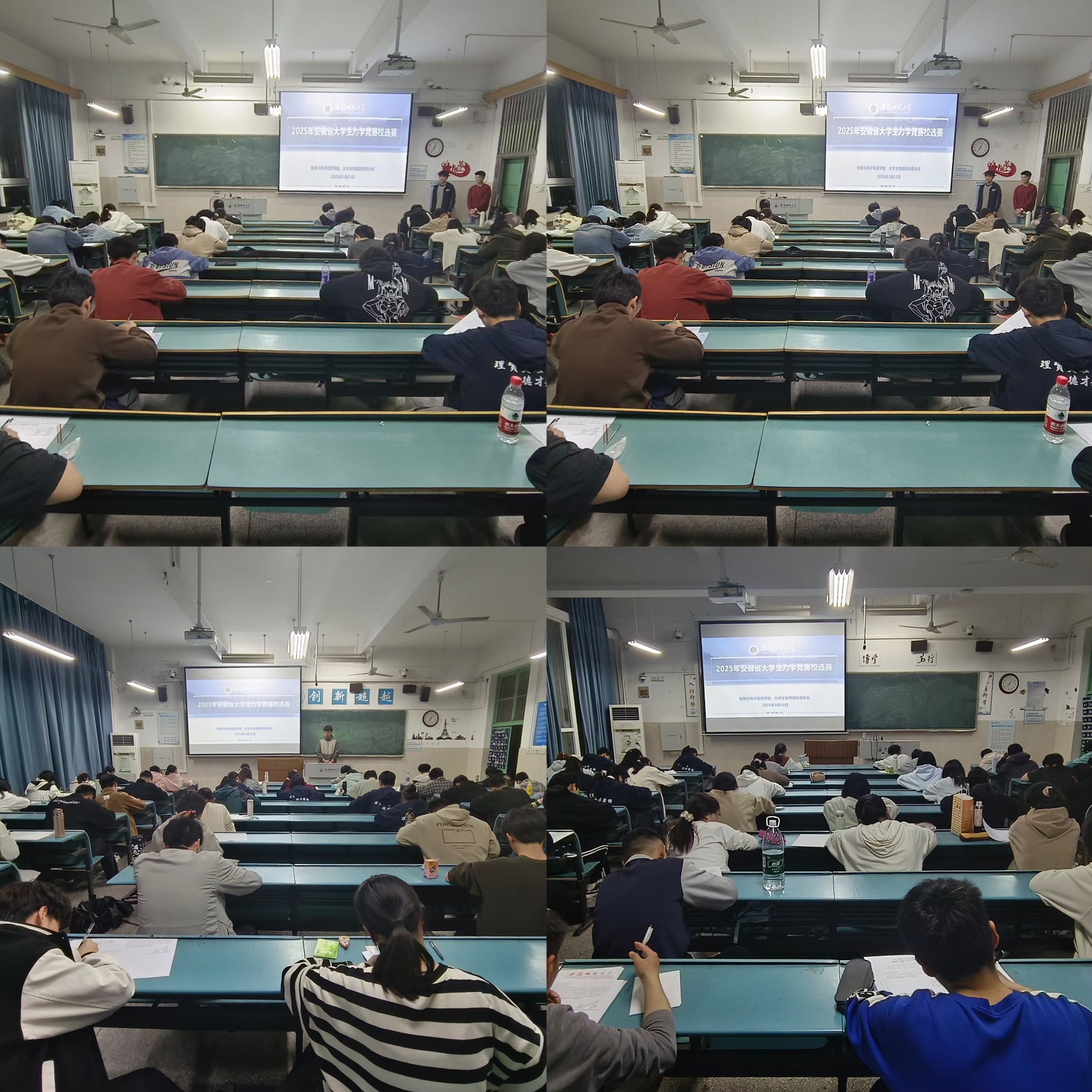 3月23日,由教务处主办,必赢线路检测3003no1承办、大学生物理爱好者协会协办的2025年安徽省大学生力学竞赛校园选拔赛在花津校区举行。选拔赛由校教务处统一安排,学生自愿报名参加,实际参赛人数较去年增加了30%。比赛严格遵照省赛的程序和要求,井然有序,学生遵守考试纪律、认真答题。59名学生从校选赛中脱颖而出,组成力学竞赛集训队.经过一个月左右时间的打磨和训练,5月18日,学校组织入围学生赴安徽工程大学考点参加2025年安徽省大学生力学竞赛。