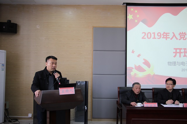 本网讯(必赢国际 李琦琦)3月23日上午9点,必赢国际分党校2019年上半年入党积极分子培训班开班典礼在理化大楼304会议室召开。校党委组织部副部长、校党校常务副校长谢超峰老师,院党委书记、分党校校长李娟老师,院党委副书记、分党校副校长黄友生老师,院关工委副主任、分党校指导老师陶绪德老师,院组织员、党委秘书王梦晓老师参加开班式。开班典礼由培训班班主任李琦琦主持。