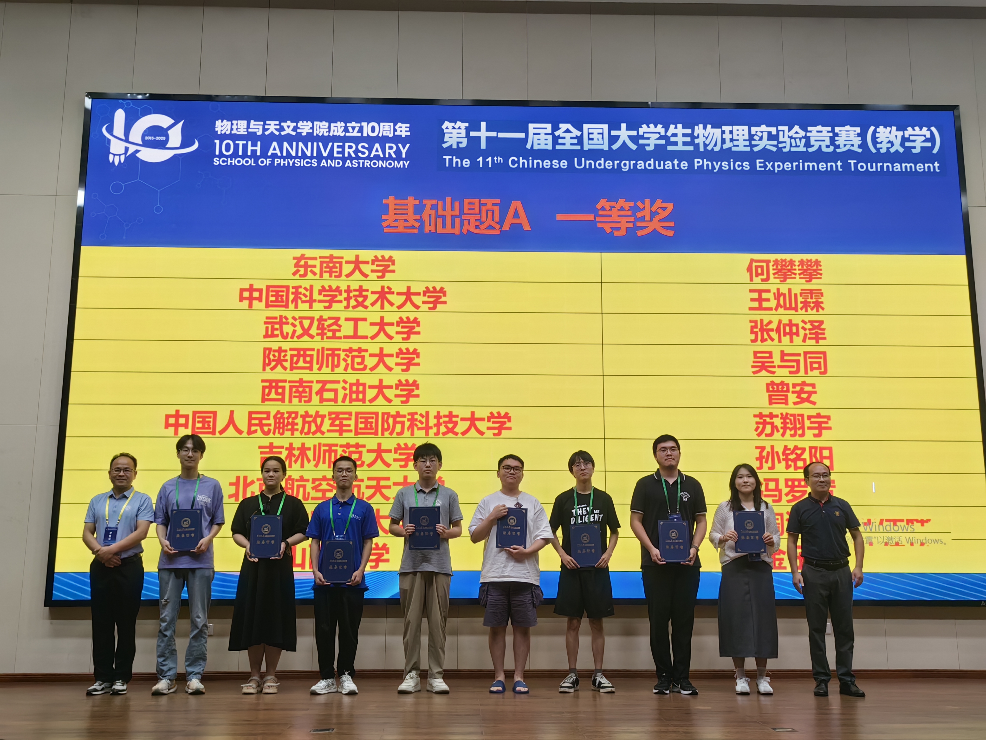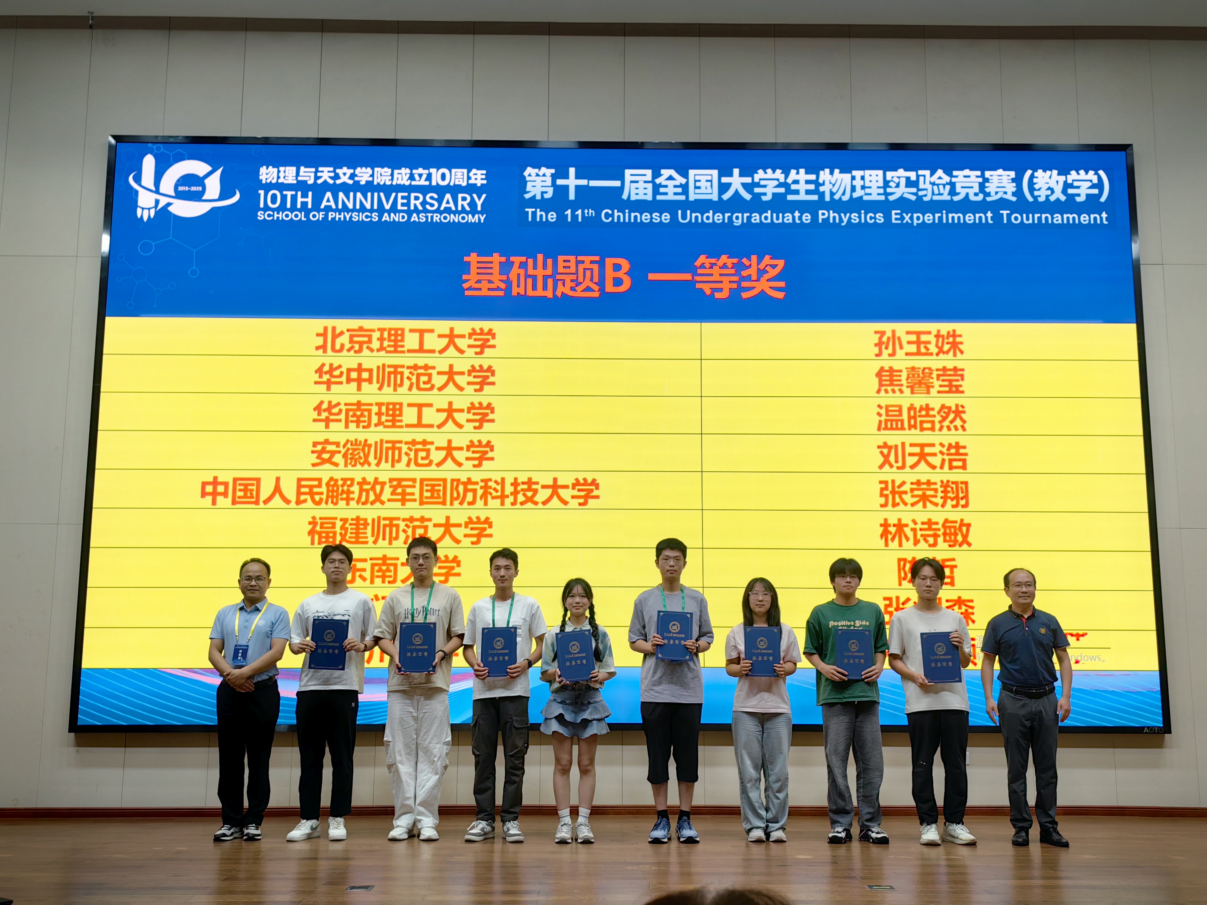 7月20日-24日, 2025年全国大学生物理实验竞赛(教学)在中山大学广州校区南校园和珠海校区落下帷幕。2023级物理学(师范)专业本科生陶润择、刘天浩同学分别斩获基础题A、B组别的一等奖(最高奖),学校荣获优秀组织奖。这是我校首次组织学生参加该赛事的“教学”赛道,并取得了全省前列的优异成绩。