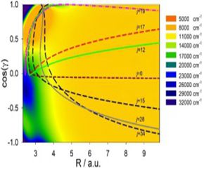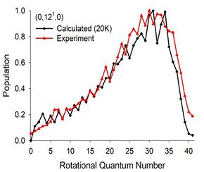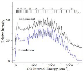 Figure 1.Calculated and measured CO rotational distributions. The observed oscillatory and highly excited inverted product distributions are closely reproduced in the calculations.