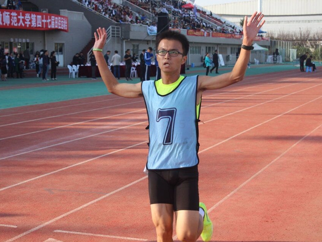 何聆子,男,2016级通信工程专业本科生。校运会之前,何聆子曾参加过安徽省第十四届运动会高校部田径比赛,并取得了10000米亚军和5000米第四名的优异成绩。几乎是一夜之间,何聆子的名字传遍了整个必赢国际。荣誉加身,可他并没有为此沾沾自喜,反而更加严格要求自己,他及时反省、总结了在省运会上的不足,为以后的比赛做准备。他坦言道:“其实并不是很满意自己的表现,因为一是自己训练时间比较短,准备不够充分,二是我第一次参加那么大的比赛,比较紧张,所以两项都没有跑出预想的成绩。”有了前车之鉴,再次走上跑道的何聆子心态好了很多,25日,何聆子轻松拿下了甲组男子1500m第二名。