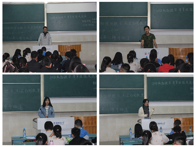 交流会上优秀学生代表的精彩发言赢得了在场同学们的阵阵掌声,给新生留下了深刻印象,帮助新生的四年学习生活指明了方向。“耐得住寂寞,才能守得住繁华,别在最该奋斗的年纪选择安逸,要用青春去点亮未来”,这既是优秀学生代表的肺腑忠言,也是18级全体物电新生的奋斗目标。