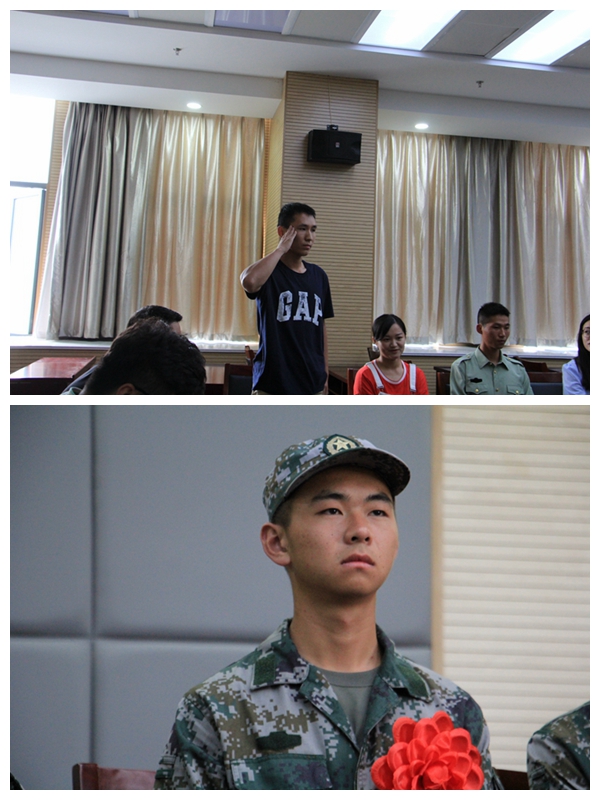 欢送会伊始,三名退伍复学老兵代表分别向即将入伍的学弟们分享自己精彩的军旅生涯。两年规律、严谨的军营生活给他们提供了一个重新塑造自己的机会,“低调做人、踏实做事、遵守纪律、勇于拼搏”是三位老兵给学弟们的寄语,同时他们希望新兵们时刻牢记身为人民子弟兵,身前是战争、身后是和平,保家卫国是他们共同的使命。李娟代表学院向9名应征入伍的学子表示祝贺,并提出了殷切希望:第一、为物电学子的高素质综合表现点赞,参军入伍是神圣的,9名同学能够通过政审、体检等环节,说明具备较高的身体素质和思想素质。第二、国家的繁荣与稳定离不开军人日夜坚守,她希望新入伍的大学生们发扬军人的优良传统,“一切行动听指挥”,尽快融入部队生活之中。第三、她希望新兵们通过部队的锻炼成长、成才,遇到困难迎难而上、不惧挫折,期待他们为家人争光、为母校添彩。随后,黄友生希望9名新兵要尽快完成角色转换,实现从一名在校大学生到一名优秀军人的转换;要严格遵守军纪,积极投身丰富多彩的军人生活;要努力练好本领,不断提升自身素质,发挥专业所长,报效祖国;要时刻心系母校,用在军队中优异的表现为学院增光添彩,为学弟学妹们树立榜样。最后,李娟老师与黄友生老师代表学院向应征入伍学子发放慰问金并合影留念。