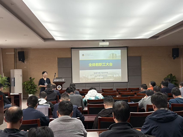 近日,必赢国际在物理楼304会议室召开全体教职工大会,开展相关理论政策学习,总结前期工作,布置近期重点工作。学院全体教职工参加会议,会议由学院党委书记宋静主持。