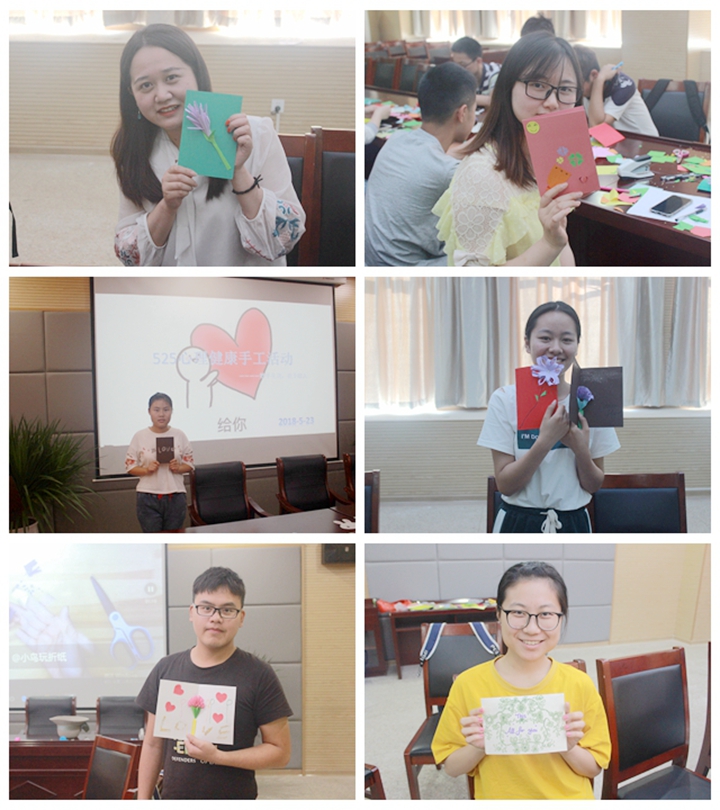 5月23日下午,必赢国际举行手工制作活动。各位参赛选手们通过观看视频,学习了贺卡的制作方法,并亲自动手制作。选手们在轻松愉快的氛围中完成自己的作品,期间不少选手还别出心裁地在作品中加入自己的创意,充分发挥着他们自己的奇思妙想和天马行空,令人眼前一亮。除此之外,学院辅导员们也参与到了贺卡的制作中,与学生们一起体验手工的乐趣。明亮的色彩映照着一张张青春洋溢的笑脸,通过此次活动,不仅给我院学子舒缓心理压力,拉近师生距离提供了一个简单有效的平台,同时也使得同学们更加关注自己的心理健康问题,对营造阳光、和谐的校园文化氛围起到了积极的推动作用。