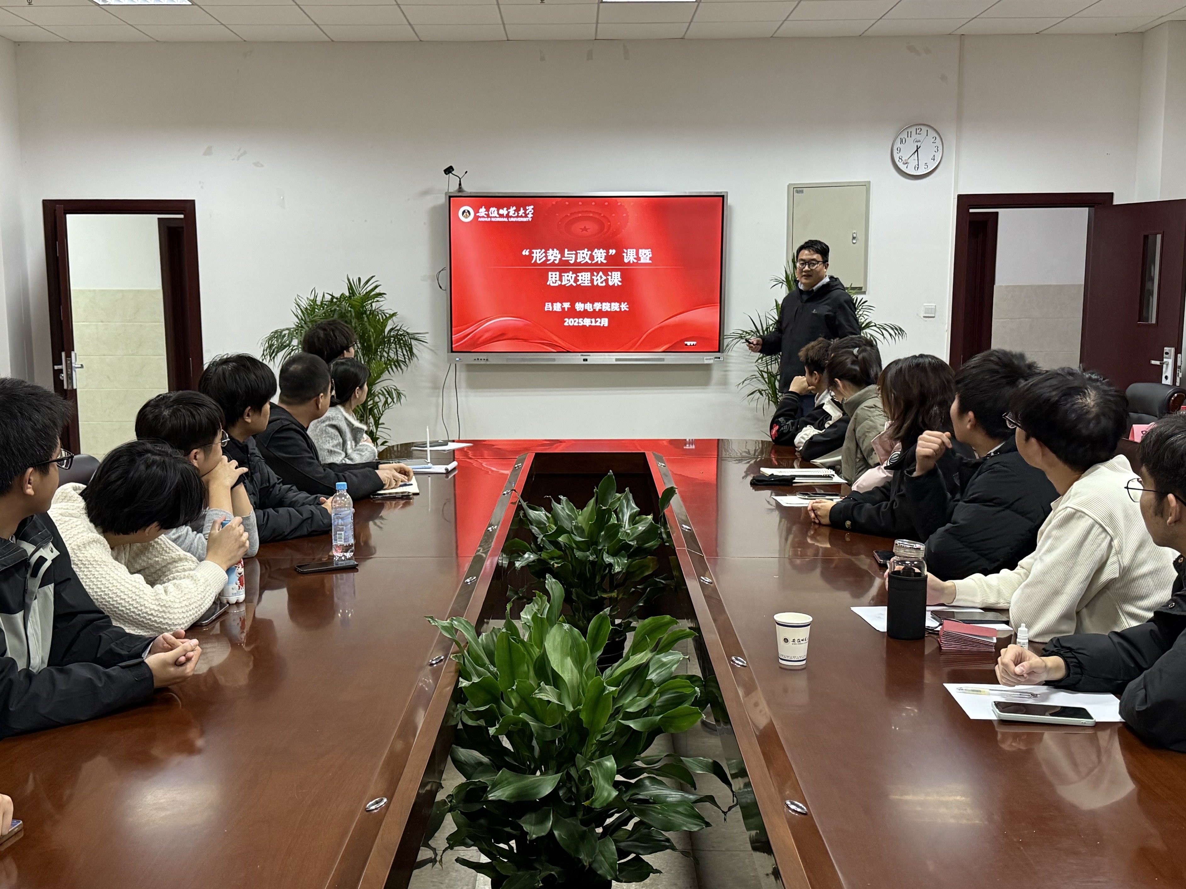 12月2日晚,必赢国际党委副书记、院长吕建平在物理楼308会议室为学院研究生第四党支部讲授“形势与政策”课暨思想理论课,带领学生党员集中学习党的二十届四中全会精神。课程由支部书记朱骞主持,支部全体党员参加会议。