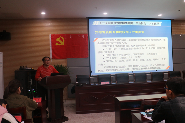 龚基云老师首先通过自己真实的个人经历,以风趣幽默的方式为学员讲述了中国特色社会主义进入新时代的一个背景,当前中国经济与周边国家的经济的差别;同时指出我们的新发展理念是以供给侧结构性改革为主线,推动新型工业化、信息化、城镇化、农村工业化同步发展。其次,龚老师通过向学员讲述人类工业文明发展的四个阶段来表明当今社会发展所需要的人才特征,即复合型,创新创业型,知识密集型。通过从以前和现在对于中国经济的应对措施以及以前和现在对于人才培养的主要特征,提出了教学学习的目标,即教育改革应大力发展应用型人才培养,学习改革应大力优化知识结构和模型。同时提出结论:需求不足仅是表象,供需错配才是实质!供需双侧发力,改革双创教育。对于高校他提出要注重培养学生的双创精神;对于学生他提出:适应转变是前提,善于思考是基础,乐于规划是根本,勤于实践是渠道,严于律己是关键。