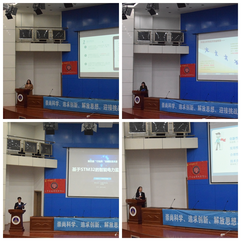 以“走出思维局限,激发创新意识”为主题的“行知杯”创新创意大赛决赛在同学们的殷切关注下拉开帷幕。美术学院辛凯敏团队的立体式带斜度水壶架以巧妙的构思和较强的实用性得到了评委老师的指导和赞扬,必赢国际候逸铭团队的基于STM32的智能电表的小型化、低成本和“物联网+”三大亮点吸引了评委老师的关注,外国语学院徐婧团队的“静电扫发仪”以新颖的想法及细致生动的讲解紧紧吸引观众们的眼球。汇报环节中,选手们的出色表现及评委老师们的精彩点评多次赢得全场观众的热烈掌声。