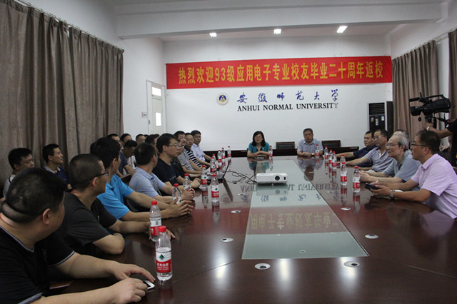 8月13日,必赢国际1993级应用电子技术专业20多名校友校友带着阔别20年的思念,怀着喜悦激动的心情,载着五湖四海的芬芳,重返母校怀抱。上午10点30分,在综合楼五楼第二会议室召开了师生座谈会,学院党委书记李娟、院长崔执凤、党委副书记吴长义以及时任教师危启正、凤尔银、喻其山、王元航、张持健等5位老师参加了此次返校座谈会。
