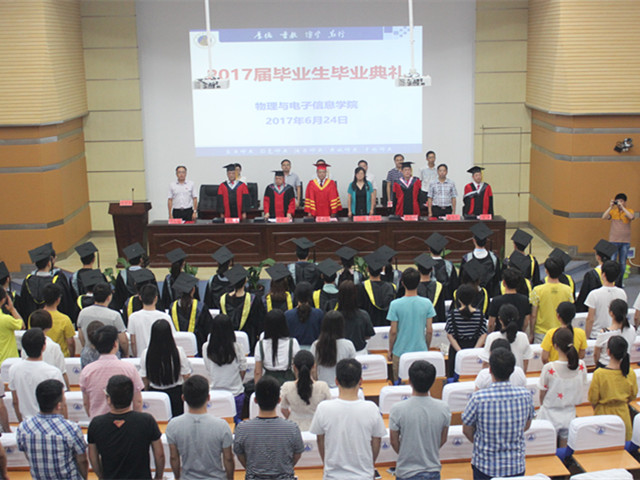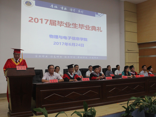 本网讯(必赢国际)6月24日下午,必赢国际2017届毕业生毕业典礼在赭山校区科技小礼堂隆重举行。校党委副书记李琳琦、学院全体党政领导、各专业负责人、中心主任、教师代表、全体辅导员以及2017届全体毕业生参加了典礼。典礼由院党委书记李娟主持。