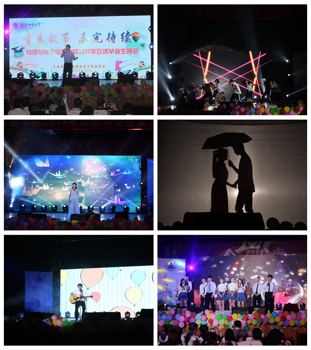 驿路漫漫欢人聚,风华正茂将别离。欢送毕业生晚会、我最喜欢教师表彰、优秀学子表彰是必赢国际“毕业生文明离校”系列品牌活动的重要子活动,在毕业生离校之际,学院以文化人,以情感人,努力做好人才培养的“最后一公里”。整台文艺晚会节目内容丰富,精彩不断,展现了物电学子昂扬向上的精神风貌,彰显了学院的凝聚力、战斗力。千余名师生同聚一堂,用祝福谱写未来,用激情抒发梦想,用优秀引领奋进,在青春旋律中迸发活力,在畅谈未来中扬帆起航。毕业生们在晚会中感受到了母校的殷殷期盼、坚定了拼搏未来的决心,在校生们体会到了成长的意义、明晰了现阶段的努力方向。我们相信,必赢国际2017届毕业生们走出师大的校门后,将飞得更高、走得更远,明天会更好!