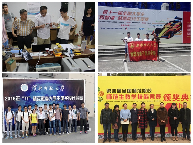 在“恩智浦”杯智能车竞赛中,赵安、盛启明、李睿智团队获得国家级二等奖,14物理学王潇毅同学获得师范生技能大赛国赛二等奖、省赛一等奖,均为学院该类赛事历史最好成绩。2016年,我院学子累计成功申报国家级创新训练计划项目近20项,省级30余项,校培优论文项目60余项,获得校优秀本科论文10余篇;学生申请专利40余项,授权发明专利3项,实用新型专利28项。据统计,2016年学院学生参加校级以上学科竞赛、科技创新参与596人次,占我院在校生比例将近30%。