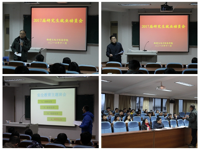 会议伊始,宋凤楼从保护个人信息安全、严抓宿舍生活安全、签订就业合同安全和防范校园网贷安全等方面就当前求职过程中可能遇到的问题和风险召开了安全教育主题班会。随后,吴长义分析了学校历年毕业就业情况和2017年毕业就业形势,希望毕业生充分发挥自身优势,了解企业市场需求,弥补自身不足,充分准备,不盲目自信也不妄自菲薄。会上,郑贤锋领学了教育部发布《高等学校预防与处理学术不端行为办法》文件,就毕业论文的学术规范与毕业生作了交流,他要求全体研究生在进行毕业论文工作的时候,要时刻将诚信牢记于心,不伪造,不剽窃,认真把毕业论文工作做好。