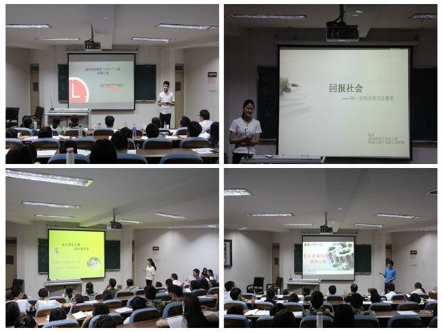 在个人“六个一”汇报中,同学们围绕社会责任、文化修养、道德培养、技能提升等方面汇报暑期个人完成的一件回报社会的事、读一本好书、走访一名优秀校友、做一次专业调研、做一个专业创新计划、练一项技能。他们感恩社会,参加抗洪防汛志愿工作;热爱母校,走访优秀杰出校友;调研专业,撰写专业调研报告;创新创业,独立设计便宜实惠的自动喷水器、方便书籍整理的智能书架、随时定位校园卡的装置等创新计划层数不穷。