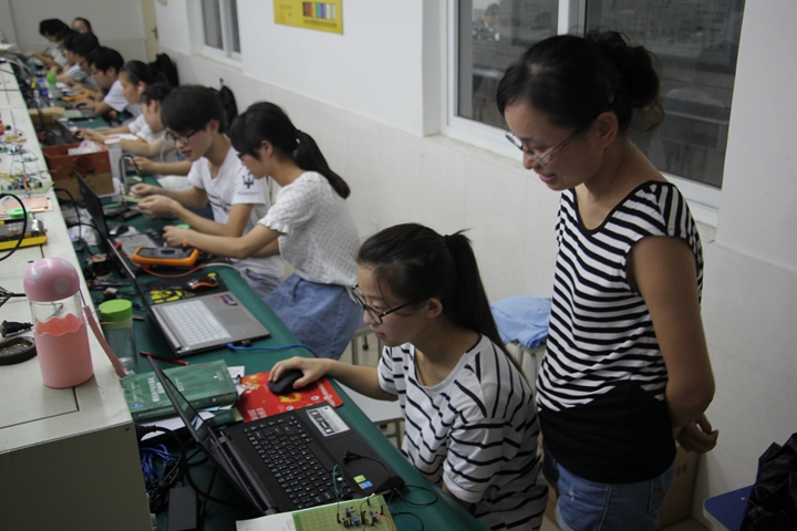 在金工科实训中心、创新实验室里,同学们认真阅读竞赛书籍,调试电路,编写程序。今年的暑期格外炎热,但是同学们丝毫没有懈怠,坚持整个暑期都留在实验室参与竞赛训练。学院领导细致了解了竞赛准备情况,勉励全体学生克服困难,认真备战、注意安全的同时进一步做好大学生创新实践活动,最后为集训学生发放慰问品。