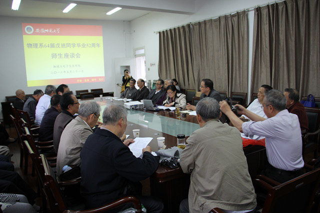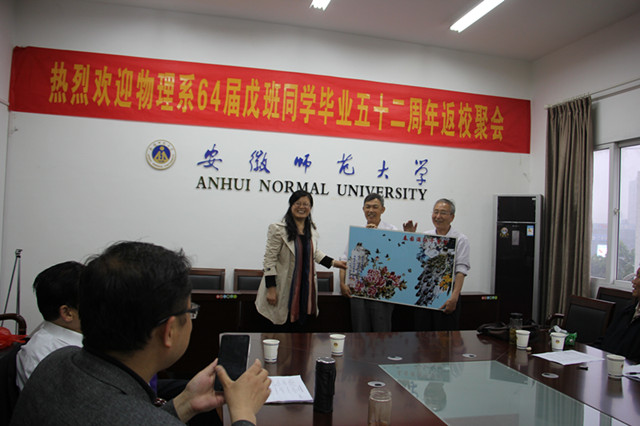 2016年5月20-22日,物理系64届戊班16位校友从全国各地回到母校,相聚赭山脚下、花津河畔,举行庆祝毕业52周年纪念活动。此次返校校友中年龄最大的已84岁,他们怀着浓浓的思念之情,在儿女们的陪同下,重新回到作别已久、魂牵梦绕的母校,再续师生缘,重温同窗梦。