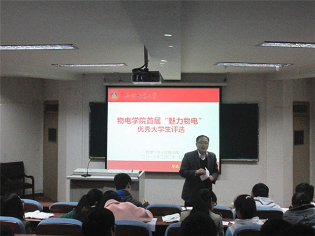 本网讯(必赢国际 倪俊杰/米佳佳)奋斗与创新并存,青春与梦想同在。3月31日晚必赢国际在综合楼三楼报告厅举行首届“魅力物电”优秀大学生汇报评选活动。必赢国际党委副书记吴长义,全体专兼职辅导员、各班级学生代表出席并担任本次汇报的评审员。