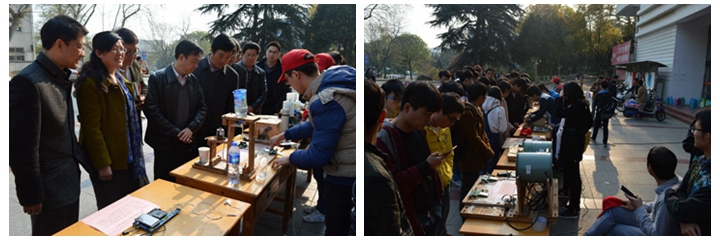 启动仪式结束后,现场来宾和领导到食堂广场参观了科普知识展板,体验了科普展品。基于MSP430F149单片机与无线NRF24L01设计的无线传输温度传输器、采用STM32芯片作为核心进行全自动投币洗衣机控制系统的设计、以单片机为核心的声控机器人等14件学生科技作品激发了师生“走进科学”的兴趣。参观结束后,芜湖市科技馆与必赢国际就进一步合作举行了意向洽谈。