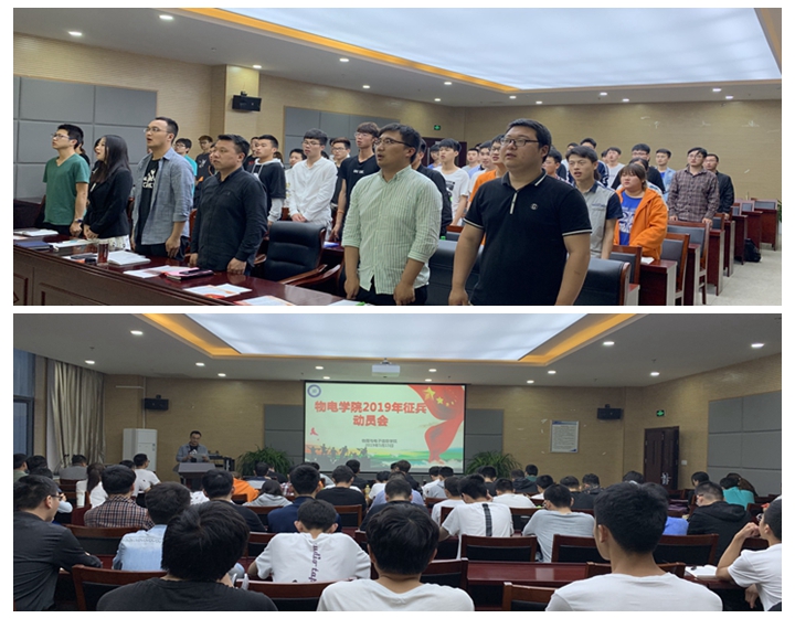 大会在庄严肃穆的国歌声中拉开帷幕。随后,宋凤楼带领与会人员重温2017年习近平总书记给南开大学8名入伍大学生的回信,总书记在回信中强调新时代大学生要珍惜身穿戎装的机会,把热血挥洒在实现强军梦的伟大实践之中,勇于在部队的大舞台上书写无悔的青春篇章。接着,院退伍学生代表蒋宏伟、解建业两位同学依次分享自己入伍期间的成长故事。初来乍到的新兵连训练、小试牛刀的列兵生活、场面壮观的军事演习,每一个阶段都是他们日以继夜的训练组成,军人只有耐得起寂寞与枯燥,经得起艰难与考验,才会收获到为人民服务的自豪与成就,通过他们的分享使我们感受到军旅生活的缤纷多彩,也激发了现场学生代表的参军热情。会议第四项,张杰对2019年国家、地方、学校对于大学生征兵工作的政策进行解读,向同学们详细介绍了入伍的基本条件、报名流程、保留学籍手续以及军校提干等内容,帮助同学们全面了解优惠政策并提醒同学们注意相关事项。