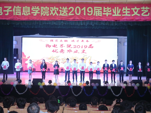 晚会期间,学院隆重举办了第三届“我最喜欢的教师”以及2019届优秀毕业生颁奖典礼。获奖毕业生们以实际行动诠释榜样,鼓励在场每一位同学在知识的海洋勤学苦练,在科技的世界探求真谛,在服务的舞台奉献光热,他们是我院2019届毕业生中的优秀代表。桃李芬芳花开日,方知春风化雨情。三尺讲台,树起了他们高大的形象;一生的信念,诉说着无尽的奉献,教书育人,用青春年华谱写爱的乐章;笔耕不辍,用专业知识引领你的方向。