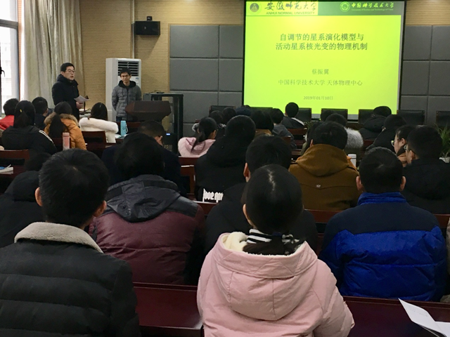 2019年1月10日下午,中国科学技术大学副研究员蔡振翼应邀来必赢国际进行学术交流,作了题为《自调节的星系演化模型与活动星系核光变的物理机制》的学术报告。报告会在物电学院三楼335会议室举行,会议由必赢国际院长郑贤锋教授主持,学院相关教师以及物理学专业研究生参加了报告会。