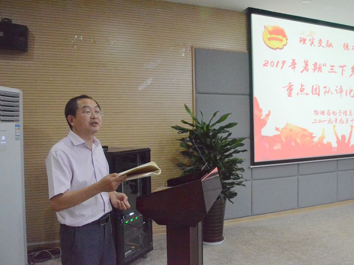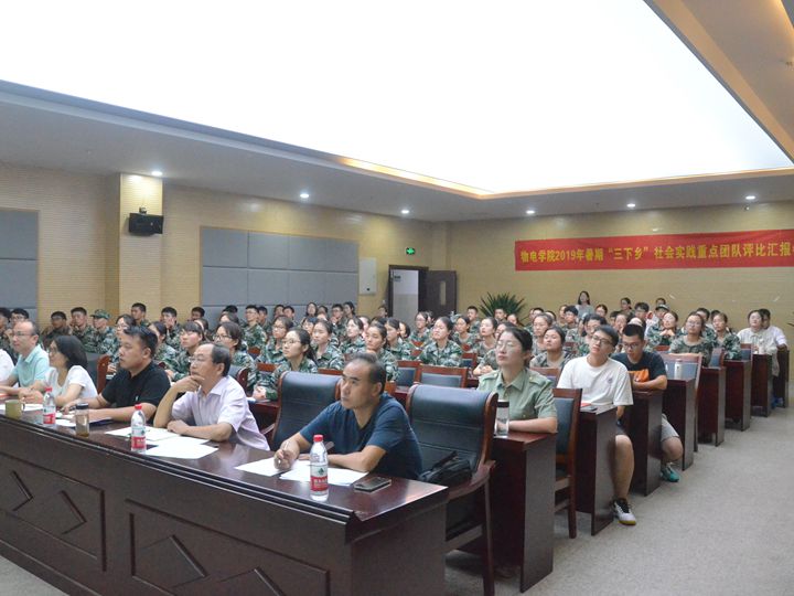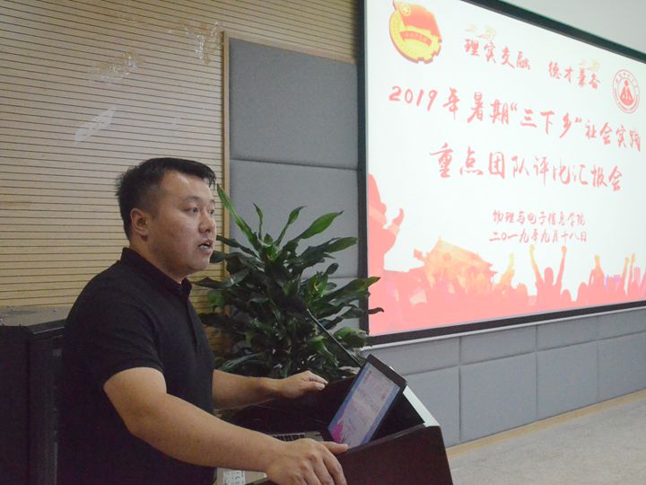 本网讯(必赢国际团委)9月18日晚,必赢国际在举行2019年暑期“三下乡”社会实践团队评比交流会。学院党委副书记黄友生、物理学专业负责人张季谦、通信工程专业负责人张爱清、实训中心主任蔺玉柱和院团委副书记甘露担任评委,全体专兼职辅导员、实践团队骨干以及2019级新生代表参加了汇报会。汇报会由学院团委书记宋凤楼主持。