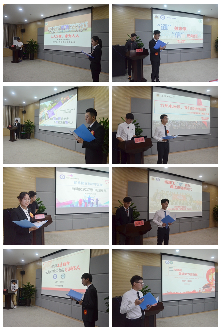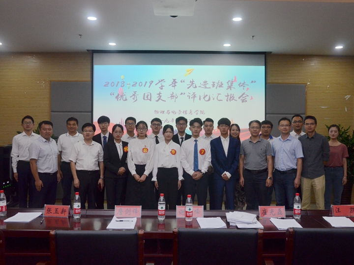 本网讯(物电学院 宋凤楼 陈月)9月23日晚,物电学院在物理楼304报告厅举办2018―2019学年“先进班集体”“优秀团支部”评选汇报会。校党校常务副校长、组织部副部长谢超峰,宣传部副部长詹剑锋,教务处副处长、创新创业学院副院长崔光磊,学生处副处长张玉新,团委副书记汪凯,学院党委副书记黄友生担任评委。学院本科生全体辅导员、各年级学生代表参加了会议。汇报会由学院团委书记宋凤楼主持。