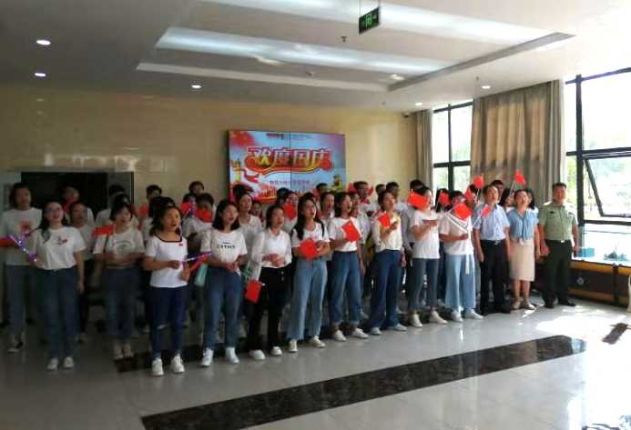 活动伊始,学院研究生党员、入党积极分子手持国旗自发来到物理楼大厅,以“快闪”的形式,高唱经典歌曲《我和我的祖国》,共同用歌声向祖国深情告白。随后,所有党员走上草坪,摆出“70”的造型,唱响《没有共产党就没有新中国》,歌唱伟大的党、伟大的祖国,献礼祖国70华诞。