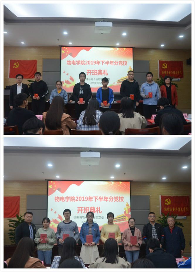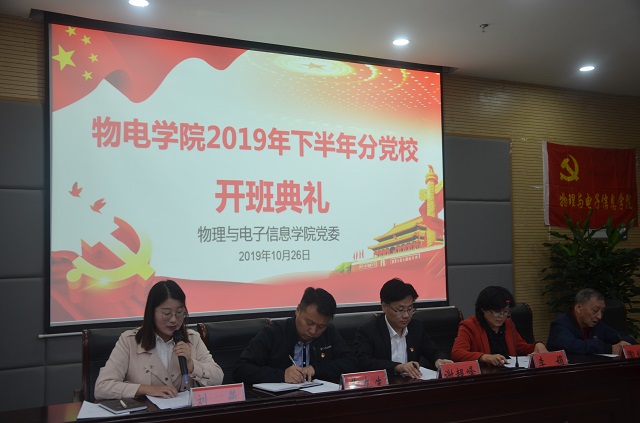 本网讯(必赢国际 刘燕)10月26日下午,必赢国际2019年下半年分党校培训班开班典礼在物理楼304会议室举行。校党委组织部副部长、校党校常务副校长谢超峰,院党委书记、分党校校长李娟,院党委副书记、分党校副校长黄友生,院关工委副主任、分党校指导老师陶绪德参加开班典礼。开班典礼由培训班班主任刘燕主持。
