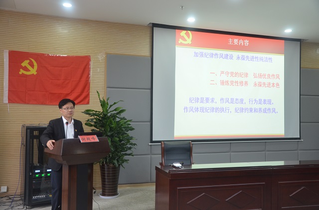 开班典礼之后,谢超峰为全体学员讲授培训班的第一课——《加强纪律作风建设,永葆先进纯洁性》。他从严守党的纪律、弘扬优良作风以及锤炼党性修养、永葆先进本色两个方面进行讲解,结合党在不同时期党群和干部群众思想不纯、纪律不严、作风不实的现实问题,引发学员对于保持党的先进性和纯洁性的思考,并带领学员一同学习了党的纪律、作风的主要内容以及加强党的纪律作风建设的发展历程。严守党的纪律,弘扬优良作风是加强党的建设的重中之重,学员们要充分认识到党的纪律的重要性,锤炼党性修养,多思入党初心,努力成为优良作风的传承者,做到认真学习、提高认识、落实实践、争当表率。