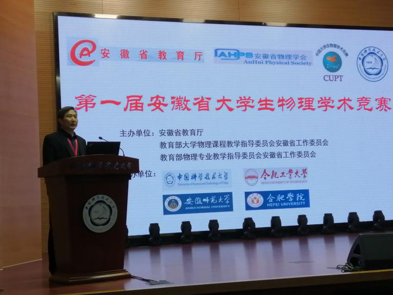 在开幕式上,教育部物理专业教学指导委员会安徽省工作委员会副主任,我校黄时中教授致辞时表示,安徽省大学生物理学术竞赛是中国大学生物理学术竞赛安徽代表队的选拔赛,已列入教育厅B类赛事。通过大学生物理竞赛这个平台,旨在锻炼大学生应用物理学知识分析问题、解决实际问题的能力,提升大学生的科研学术能力。