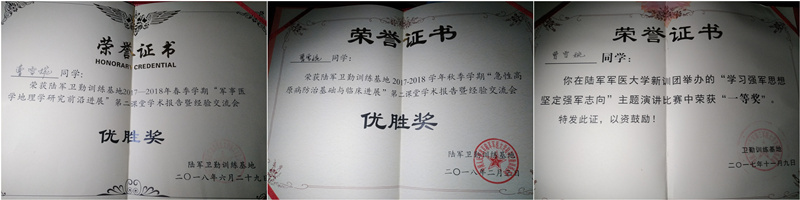 曹雪婉在上等兵时选择考取军校,继续留在军营深造,对于未来的军队生活,她是未知的,但她知道,“军绿色的青春是最美的青春,不管前方的道路有多难,军校生活有多苦,都阻挡不了她对军队的热爱与向往”。在漫长的军考准备中,她如愿以偿考上了中国人民解放军陆军军医大学,从"战士"到"军医",角色的转换使雪婉的生活变得更加丰富多彩,忙碌的医学知识学习,繁重的训练任务,枯燥的科研生活让她每天像打了鸡血一样亢奋。从此"救死扶伤,治病救人"成了她的信仰。