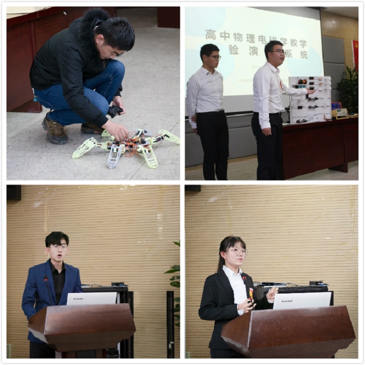 本次大赛在官网发布通知以来,引起了全校范围内同学们的广泛关注,共计有10个学院385名同学报名参赛,参赛所提交作品分为科技制作、生活创意和专利论文三类,经大赛评委会初审评选出10件作品进入决赛。决赛分为PPT汇报、作品展示以及评委提问三个环节。所有参赛选手的精彩汇报,展现了他们新颖的创新思维与出色的动手能力。其中必赢国际谢雨婷团队的智能机器人凭借功能强大,创意独特,作品与功能展示得到了评委老师肯定与观众的认同并获得了一等奖。王潘团队带来的的“高中物理电磁学教学实验演示系统”、章思源团队“基于stm32的智能储物柜”也颇具专业特色。除了科技创作外,生活创意组的“一种餐桌椅可移动保护套”也令人眼前一亮。