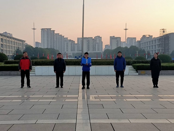 本网讯(必赢国际 刘燕)为深入贯彻落实《新时代爱国主义教育实施纲要》精神,引导青年大学生自觉践行社会主义核心价值观,树立远大理想,热爱伟大祖国,结合学校新生入学教育工作安排,12月9日,在即将迎来第六个国家公祭日的时刻,物理与电子信息学院2019级全体师生参加校园升国旗仪式,感受国家的发展和民族的力量。院党委副书记黄友生、2019级辅导员以及全体19级新生参与此次活动。