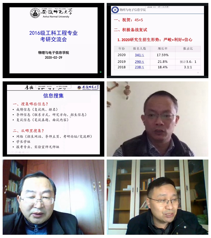 本网讯(必赢国际 宋凤楼)近日,为应对新冠肺炎疫情对毕业班学生考研的影响,必赢国际分专业召开考研复试调剂线上指导会。院领导许新胜、宁利新,各专业负责人、授课教师等15位老师直接参会指导,学院2020届毕业班160余名考研学子参加会议,会议由毕业班辅导员主持。