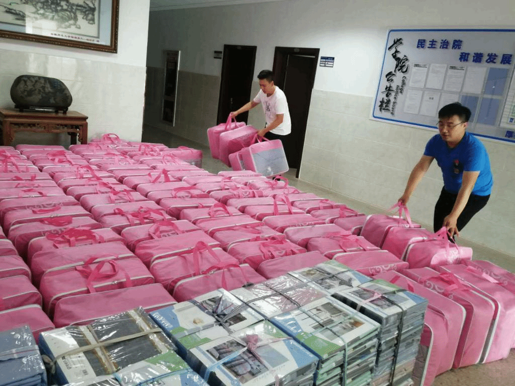 学院前期在走访宿舍中发现,由于受疫情影响宿舍长期无人居住,部分学生被子床单等严重发霉,需要重新更换。为减轻困难生经济负担,让他们切实感受到党的温暖,学院创新资助方式方法,决定在学生开学前为每位建档立卡学生和孤儿购置床上用品,并提前发短信逐一告知学生,真正做到暖心育人。9月3日下午,购置的棉被送到学院后,院学工团队根据学生的性别和宿舍分布,进行分类打包。4日下午,学院利用私家车和租用三轮车,一趟又一趟的将全部99名学生的用品悄然发放到位。