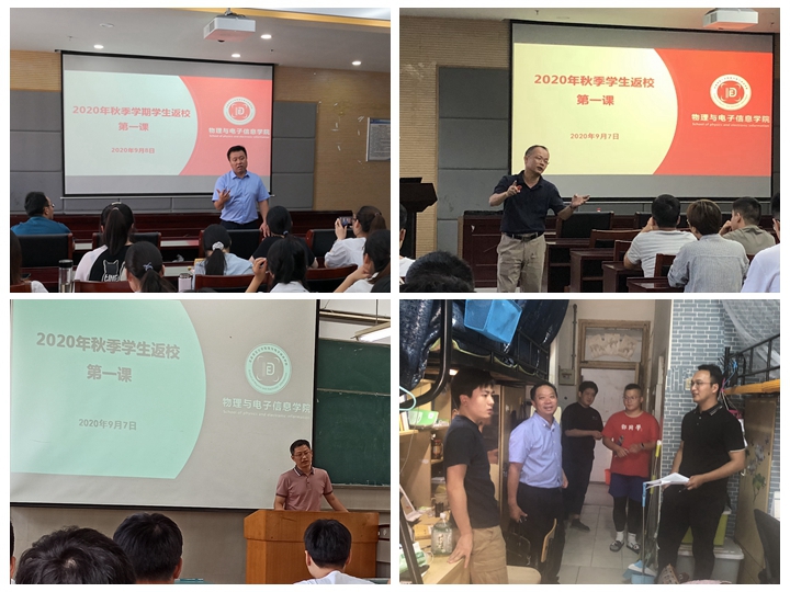 返校当天,学院领导班子深入学生宿舍走访看望,了解学生问题需求,鼓励学生尽快适应返校后的学习生活。领导班子走进课堂,讲授“返校第一课”,鼓励同学们在疫情防控、防汛救灾的“思政大课”中厚植情怀、汲取力量、明确担当,提醒同学们严格遵守返校后学校各项管理规定;召开诚信教育主题班会,认真备考2019-2020学年第2学期期末考试,并嘱咐同学们明确目标,做好下一步的学习规划。学院组织师生观看全国抗击新冠肺炎疫情表彰大会。