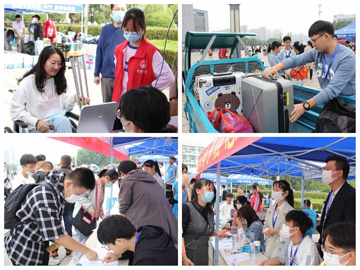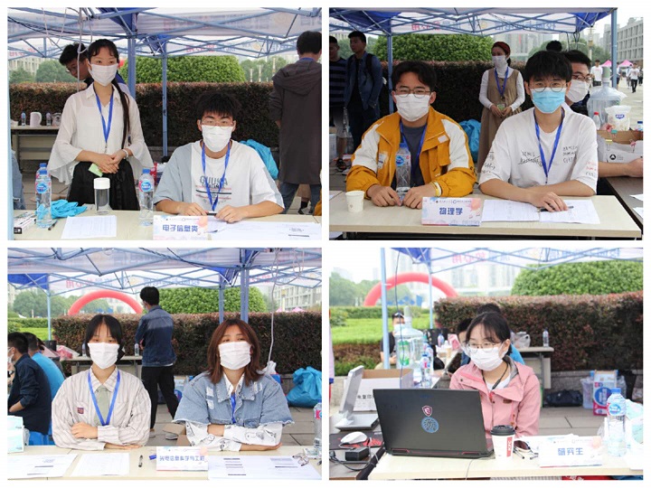 迎新现场有温度 19日上午六点半,学院迎新工作人员和志愿者提前到场做好准备,根据学校有关校园疫情防控文件要求,分批次轮班服务。在报到现场,志愿者统一着红马甲、佩戴工作牌,带领新生进行“安康码”查验、完成人脸识别、领取报到材料和住宿寝室确认。在迎新站点还设置家长休息处、饮水处,确保了每名新生从报到处到寝室的“一站式”服务,让新生一进校门便充分感受到“物电温度”。