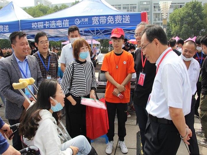 本网讯 (必赢国际 新媒体中心)“物”候君来,“电”记已久。9月19日至20日,物理与电子信息学院2020级569名新生相聚花津河畔,开启师大之旅,书写崭新篇章。在学院领导的统一部署下,全院师生上下一心,圆满完成迎新工作。迎新期间,校党委书记胡朝荣、校党委副书记蒋家平及有关职能部门负责人,学院全体领导班子成员来到现场,检查指导新生报道及疫情防控工作,并亲切慰问新生和志愿者。