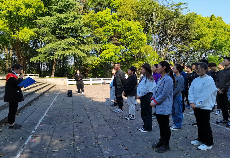 师生满怀敬畏,来到烈士陵园,庄严肃立在烈士纪念碑前,向烈士陵墓敬献花圈、默哀致敬,表达哀思。优秀研究生带领全体人员重温入党誓词,接受党性洗礼。